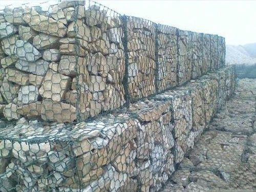石籠網(wǎng)是金屬線材編織的角形網(wǎng)(六角網(wǎng))制成的網(wǎng)箱,使用的金屬線徑是根據(jù)六角形的大小而不同。如果是金屬鍍層的金屬線六角形,則使用線徑為2.0mm到4.0mm的金屬線,如果是PVC包覆的金屬線編織的六角網(wǎng),則使用外徑為3.0mm到4.0mm的PVC(金屬)線.外框邊緣的線則使用比六角網(wǎng)線粗一號的線。